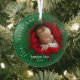 Splatter pattern My First Christmas Baby Photo Ornament is a stylish modern holiday ornament with baby's name featured in fun typography in white over your photograph. First Christmas, Sample Name, add the year. New for 2025.