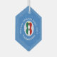 Un ángel vuela usando la bandera de México para Hanukkah. Diseñada para familias con múltiples religiones, vuela en un círculo blanco de plazas chillonas sobre un fondo de cuadrados azules y sarcásticos sobre un adorno de vidrio hexagonal. Personalizar añadiendo el año que quieres hacer esto especial. Personaliza con tu nombre, o el nombre de otra persona si dar es un regalo. Diseñado para darle alegría a su decoración Hanukkah en esta temporada de vacaciones.