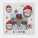 Baseball Ball Santa Hat Name Photo Christmas Glass Ornament. Fun baseball ball with a red Santa hat, custom name and a photo. Featuring festive baseball design wearing Santa hat, these customizable ornament brings sporty cheer to your tree and gift list.