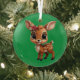 Celebre la temporada de fiestas con este único adorno de vidrio redondo de la fiera verde de la amante de los venados, que presenta una entrañable imagen de un personalizado de animales de bosque de bosques de un lindo ciervo con flores de poinsettia escondidas en el oído de la flor. Perfecto para decorar tu árbol o como un regalo atento, esta original decoración floral de doe hace de los años venideros un lugar muy apreciado. Transferir este diseño a otros productos. ¡Disfruta este diseño a tu manera! Consulte ForestBabies Xmas Deer Collection para ver las decoraciones correspondientes. 🎄 🦌