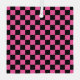 A vibrant checkerboard pattern of black and bright pink squares, creating a visually striking and bold contrast. The design is uniform and symmetrical.