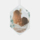 Crea tu propio toque de boda con este elegante ornamento de cristal de verde y foto casada. Este diseño moderno y de moda incluye ramas de eucalipto y ilustraciones acuáticos. Añade dos fotos personalizados delante y atrás, nombres recién casados y un texto personalizado. Muéstrate todo tu amor con este ok un adorno de cerámica personalizado, perfecto también como regalo de aniversario y compromiso. ¡A tu novia le encantará! Sin orden mínima.