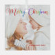 Hermoso arco iris Feliz Navidad, adorno con hermosa tipografía cursiva de arcoiris. Este moderno regalo fotográfico familiar de vacaciones cuenta con magníficos y coloridos guiones superpuestos y tu nombre en rojo sobre la imagen completa de la sangre.