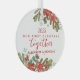 Este encantador ornamento navideño capta la esencia de la temporada navideña con su hermoso diseño botánico acuático. Con sus vibrantes poinsettias rojas, sus cúmulos de bayas y sus exuberantes pinares verdes, crea un elegante y festivo borde alrededor del adorno. En el centro, la frase "Nuestra primera Navidad juntos" está elegantemente redactada, celebrando un hito especial. Este adorno es perfecto para las parejas que celebran juntos su primera temporada de vacaciones, lo que lo convierte en un conservadurismo sentimental que se apreciará en los próximos años. La posibilidad de personalizarlo con un año y los nombres le aportan un toque único y personal, lo que lo convierte en un regalo ideal para los recién casados o como un complemento especial a su propia decoración de vacaciones. Ya sea adornando tu árbol de Navidad o mostrándolo como parte de un arreglo festivo, este adorno le da un toque de elegancia y calidez a cualquier entorno de vacaciones. Su diseño atemporal y sus características de personalizable aseguran que será valorado, simbolizando el amor y la unión durante la época más maravillosa del año.