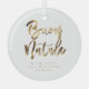 Buon Natale Italiano Feliz Navidad Frase Typografía Elegante Faux Relieve metalizado dorado Textos, Guión Moderno, Vidrio de Moda Ornamento de Navidad