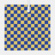 A checkerboard pattern with alternating yellow and blue squares. The repeating geometric design creates a vibrant, symmetrical visual effect.