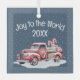 Adorno De Cristal Camión Rojo Retro En Copos De Nieve