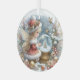 Draped in Santa red and crowned with holly, a fairy-like figure gazes into a golden snow globe beneath falling snowflakes. With pastel ornaments and delicate wings, this scene evokes the quiet enchantment of Christmas dreams.