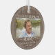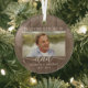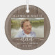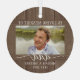 Honre a un ser querido fallecido durante las fiestas con un adorno navideño de vidrio redondo de madera falsa con foto personalizada. La imagen y todo el texto de esta plantilla son fáciles de personalizar. "Por siempre en nuestros corazones" se puede cambiar a "en memoria de", "un ángel en el cielo" u otra redacción. (CONSEJO DE UBICACIÓN DE IMAGEN: Una forma fácil de centrar una foto exactamente como la desea es recortarla antes de subirla al sitio web de Zazzle). El diseño moderno de estilo granja presenta un borde de madera falsa marrón rústico, elegante caligrafía de estilo manuscrito, tipografía de máquina de escribir con nombre y años, y una imagen de su elección. Este recuerdo de simpatía único y moderno es una idea de regalo reflexivo para un funeral y añade un toque elegante a las decoraciones navideñas del hogar.