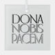 Para la temporada de fiestas, o en cualquier momento, una hermosa manera de decir "Danos paz" es con esta imagen tipográfica de la traducción latina: "doña Nobis Pacem", en tonos de negro a gris claro, aquí en un brillante adorno de vidrio.