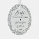 Ornamento especial para conmemorar la primera Navidad del bebé. El diseño presenta un diseño floral sencillo con "La primera Navidad del bebé", que se muestra en un elegante guión y emparejamiento de texto en serif. Personaliza con el nombre del bebé y el año. ¡Haz un regalo muy especial!