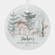Simplemente perfecto ornamento de la Primera Navidad de Bebé con una dulce acuarela de la escena del bosque de bebé con un ciervo, erizo y ardilla.