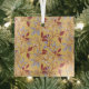 Adorno De Cristal Elegant Floral Pattern with Red and Blue Leaves