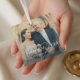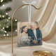 Este hermoso ornamento cuenta con una exposición de fotos completa, acompañada de un guión elegante y una combinación de texto en serif que dice "Padre de la novia", acentuada con un delicado elemento cardíaco. Personalízalo con la fecha de su boda para crear un conservador verdaderamente significativo. Un suave y sutil desvanecimiento en la parte inferior de la foto agrega un toque elegante y atemporal, haciéndolo perfecto para ser mostrado en el árbol de vacaciones o como un apreciado recuerdo. Ideal para regalar al padre de la novia, este adorno es una manera sincera de honrar su amor, guía y apoyo en su día de boda. Diseño de ©Moodthology Papery