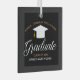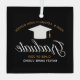 Este regalo de adorno navideño para la moda de personalizado negro y oro presenta una tipografía blanca elegante bajo un nombre de instituto o universidad para la clase de 2025. Personalizar con tu año de graduación bajo la encantadora caligrafía para un gran regalo de graduado personalizado.