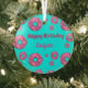 Adorno De Cristal Feliz cumpleaños, donuts de crema rosada azul