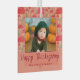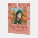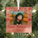 Feliz Día de Acción de Gracias, Ornamento de Glass Fotográfico de champiñón Rojo. Un bonito patrón de setas rojas en colores otoñales. Personaliza el adorno con tu foto, nombre de familia y año. Un agradable día de Acción de Gracias personalizado.