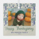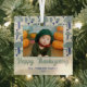 Feliz Día de Acción de Gracias Ornamento de Glass Fotográfo Fall. Un bonito patrón de champiñones en colores otoñales. Personaliza el adorno con tu foto, nombre de familia y año. Un agradable día de Acción de Gracias personalizado.