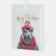Adorno De Cristal Feliz Navidad Hippo Santa sombrero y bufanda