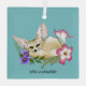 Un lindo zorro fennec se curvó con flores en un fondo azul.