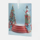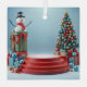 Una vibrante representación 3D capta el espíritu de los Navidades con una escena festiva. Un árbol de Navidad perfectamente decorado y adornado con ornamentos rojos, azules y dorados se alza junto a un podio rojo de varios niveles. Al otro lado, un animado muñeco de nieve asoma desde una gigantesca caja de regalo verde coronada por un brillante arco rojo. Diseminadas por la base se encuentran regalos envueltos y bóvedas coloridas, completando el alegre ambiente vacacional.