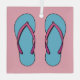Un ilustracion con un par de chanclas rosas y azules. ¡Es verano! Tomemos un descanso y nos divirtamos un poco bajo el sol. ¿No estás emocionado de preparar todas tus cosas para las vacaciones? No olvides tus chanclas.