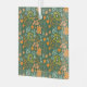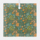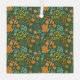 Seamless floral pattern on a dark green background featuring stylized orange, yellow, and teal flowers, leaves, and abstract shapes.