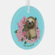 Un lindo perezoso sentado entre flores rosadas sobre un fondo azul