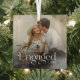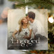 Celebra tu momento especial con un único ornamento de vidrio de fotografía de pareja minimal y moderna comprometido. Este adorno presenta un diseño elegante y minimalista que captura perfectamente la esencia de su compromiso. Haga que su decoración de vacaciones destaque del resto con este adorno único, que incluye una foto de usted y de su ser querido.