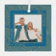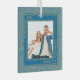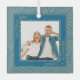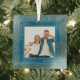 Tu foto favorita se muestra en un adorno de vidrio cuadrado con un patrón de líneas y puntos dorados en azul. ¡Personalizado y sube tu propia imagen para crear adornos de árbol de Navidad para ti mismo o como regalo a la familia, amigos, padres y abuelos! MÁS DISEÑOS en nuestra tienda.