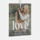 Crea un dulce sabor de tu boda, luna de miel o momento especial con este hermoso adorno personalizado. Añada un boda favorito o una foto de compromiso con "amor" colocado en letras blancas clásicas, y sus nombres debajo.