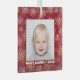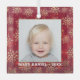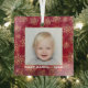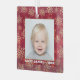 Tu foto favorita aparece en un adorno de vidrio cuadrado con copos de nieve dorados, estrellas y puntos sobre un fondo rojo. ¡Sube tu propia imagen para crear adornos de árbol de Navidad para ti mismo o como regalo para la familia, amigos, padres y abuelos! MÁS DISEÑOS en nuestra tienda.