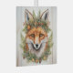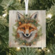 Este adorno cuenta con un zorro Navidad que luce una corona festiva de azotes de vacaciones.