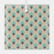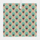 Geometric pattern of teal, beige, and black shapes forming a retro, symmetrical design. The tones convey a vintage, stylish atmosphere.
