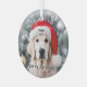 Este maravilloso diseño de Navidades muestra un dulce Golden Retriever usando un sombrero rojo de Santa.