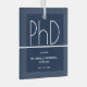 Un adorno de vidrio de keepsake para una graduación de doctorado con un diseño azul y blanco. Este artículo es parte de una colección de fiestas de graduación que incluye una invitación, invitación de fotos, servilletas de papel, tarjetas de presentación y más. Personalizar estos artículos, agrégalos a tu carrito y celebra este gran logro.