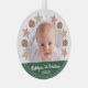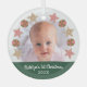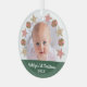 "Primera Navidad". Su foto personalizado del recién nacido, junto con una corona de galletas de Navidades y una juguetona tipografía de escritura blanca en una banda verde, le ayuda a iniciar Navidades y Año Nuevo. Sienta la calidez y la alegría de la temporada de vacaciones cada vez que usas este elegante y moderno ornamento personalizado de conservas de fotos. ¡Perfecto para los padres, abuelos y otros parientes recién orgullosos! Simplemente reemplace esta foto de ejemplo con una de las suyas, escriba el nombre de su elección y el año, y puede personalizar fácilmente este adorno de vidrio de conservado de fotos de este Navidad. Por favor, envíame cualquier pregunta o petición.