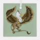 Un grifo de fantasía marrón y blanco está en fuga en un fondo verde salvia