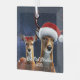 Este diseño presenta un dólar y un perro que llevan sombreros de Santa en la nieve.