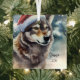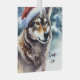 Esta escena invernal tiene un lobo magnífico usando un sombrero de Santa en la nieve.