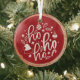 Abróchese su árbol con este audaz y festivo adorno con tipografía blanca de Ho Ho Ho Ho, rodeado de adornos, un caramelo, un bastón y el gorra de Santa, todo ello con un alegre fondo rojo. El toque rústico acogedor se combina con la madera. Un placer para las familias, los niños y todo aquel que ame la magia de la temporada.