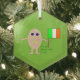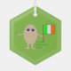 Este adorno tiene un personalizado divertido de un huevo con brazos y piernas. El huevo tiene brazos y piernas y una pequeña grieta en la cabeza exponiendo el interior blanco. Tiene ojos azules con un alumno negro y una gran sonrisa donde se puede ver la yema del huevo. La concha de huevo parece áspera. Este huevo irlandés patriótico sostiene orgullosamente su bandera y hay un texto verde debajo de la bandera que dice "todo se trata de la craic". Este divertido diseño es genial para el Día de los Simpatizantes o para hombres y mujeres irlandeses orgullosos.