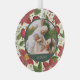 Personalice este elegante adorno navideño con una foto favorita y el año, rodeado por un patrón botánico de invierno que incorpora flores rojas de poinsettia, follaje verde y pequeñas flores blancas.