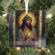 Jesus's life reflects compassion, forgiveness, humility, and an unwavering commitment to humanity. This stained glass ornament is a source of inspiration and motivation to do good deeds on Christmas and everyday. The quote “May His light guide your steps and bring clarity to every path.” can be personalized. The text uses modern typography.