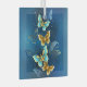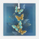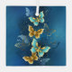 Composición de vuelo, joyería, oro y mariposas oscuras sobre fondo de joyería texturada. Mariposa dorada.
