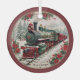 Merry Christmas Steam Train – Festive Journey Through Snowy Pines Glass Ornament