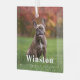 Modern Custom Name Photo Holiday glass ornament with your pet’s name in a bold white serif font.