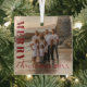 Celebre la temporada con este adorno de cristal de personalizable de la colección de navidades estilo Merry con escritura minimal moderna. Diseñado con una estética limpia y moderna, cuenta con un audaz guión rojo que lee Feliz Navidad junto con texto de personalizable para el año, nombre de familia o mensaje especial. El adorno también incluye espacio para tu foto favorita, lo que lo convierte en un placer personal para el tesoro durante años. Perfecto para las familias, las parejas o como un regalo de vacaciones, este adorno mínimo pero atemporal complementa la decoración de sus Navidades con gusto. Póngalo en pareja con tarjetas de vacaciones, platos, servilletas y más de la Modern Colección de Guiones de Navidad de Porch And Gable Design para una apariencia de vacaciones cohesiva.