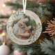 Esta temporada navideña, conmemora un año especial con esta elegante foto personalizada adorno navideño. Graceful sprigs de mistletoe de acuarela pintada de color verde mudo enmarcan tu foto, con tu nombre y el año recorriendo.
