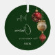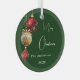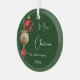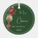 Fondo degradado de color verde. Decorada con azulejos rojos y dorados. Personaliza y agrega tu nombre, año. Texto: Feliz Navidad